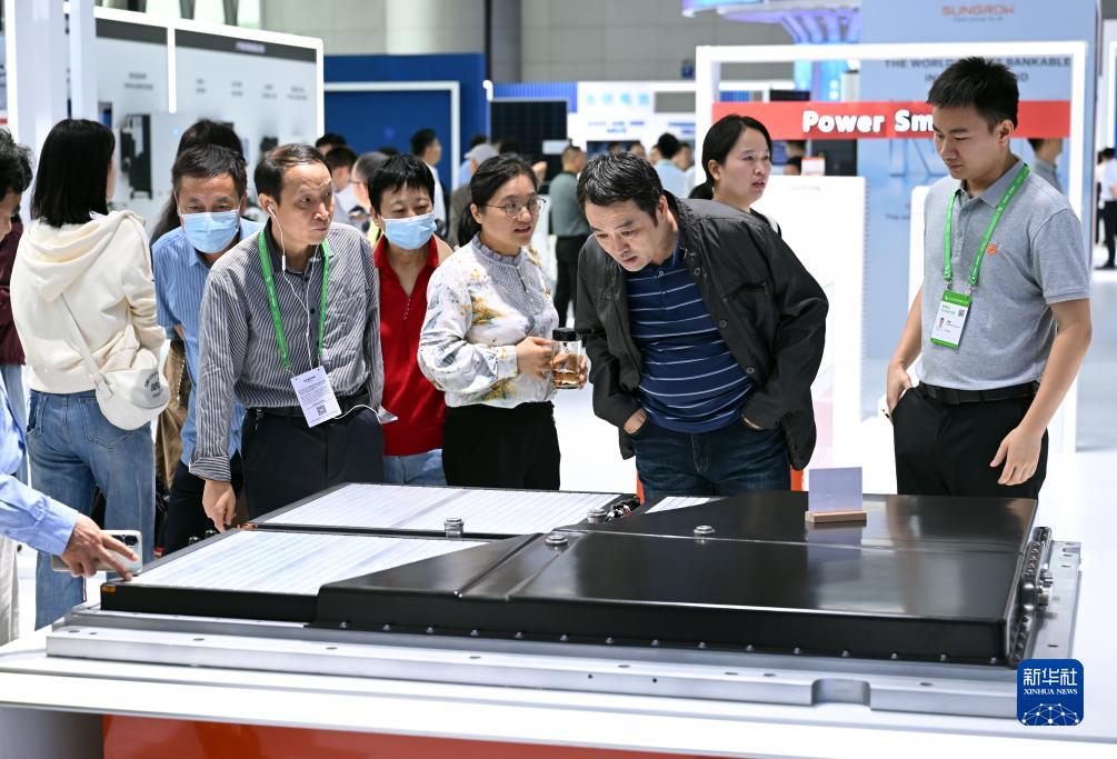 9月21日,觀(guān)眾在2023世界制造業(yè)大會(huì )參觀(guān)一款新能源汽車(chē)電池包。