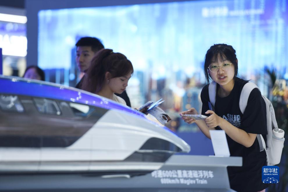 9月21日,在2023世界制造業(yè)大會(huì )上,觀(guān)眾在近距離觀(guān)看時(shí)速600公里高速磁浮列車(chē)模型。