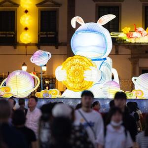 中秋及國慶佳節將至,澳門(mén)以“中秋喜相逢 國慶共歡騰”為主題的花燈日前已點(diǎn)亮,佳節氣氛濃厚。