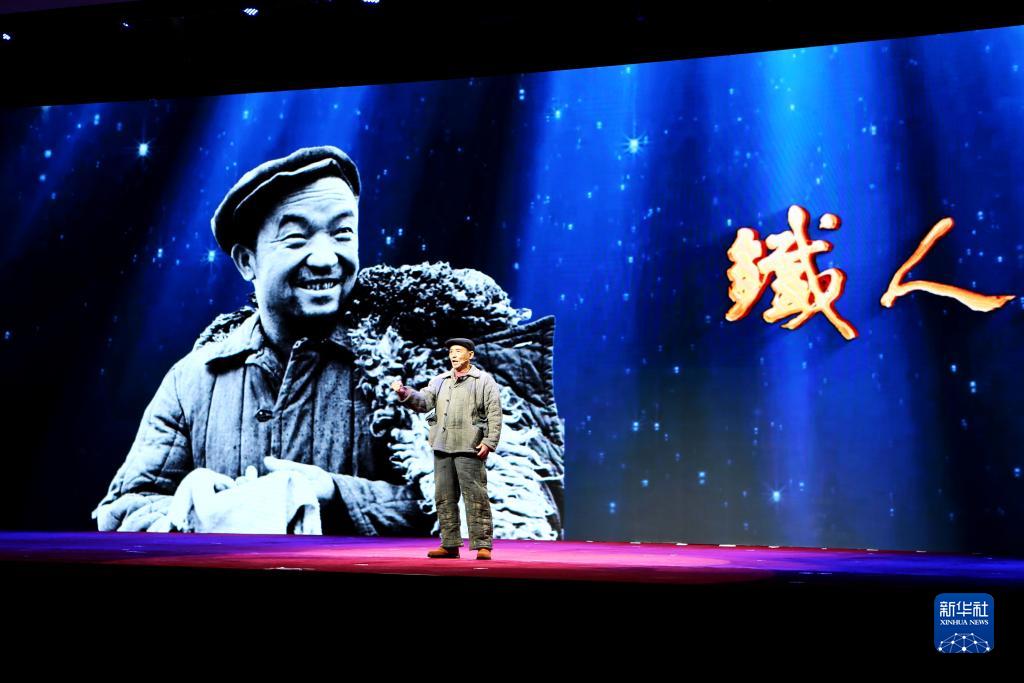 9月21日,演員在表彰大會(huì )現場(chǎng)朗誦敘事散文詩(shī)《鐵人王進(jìn)喜》。