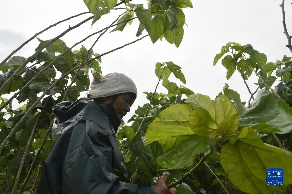 9月21日,在汝州市焦村鎮一處桑樹(shù)種植基地,村民在采摘桑葉。