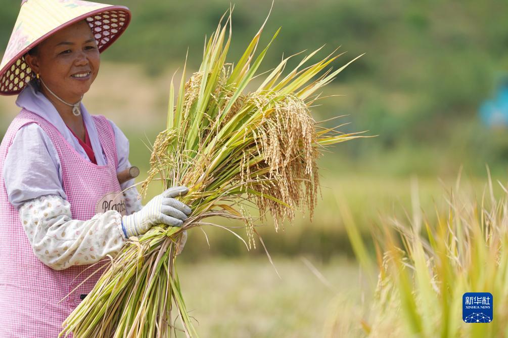 9月19日,云南省文山壯族苗族自治州文山市秉烈鄉村民在搶收稻谷。