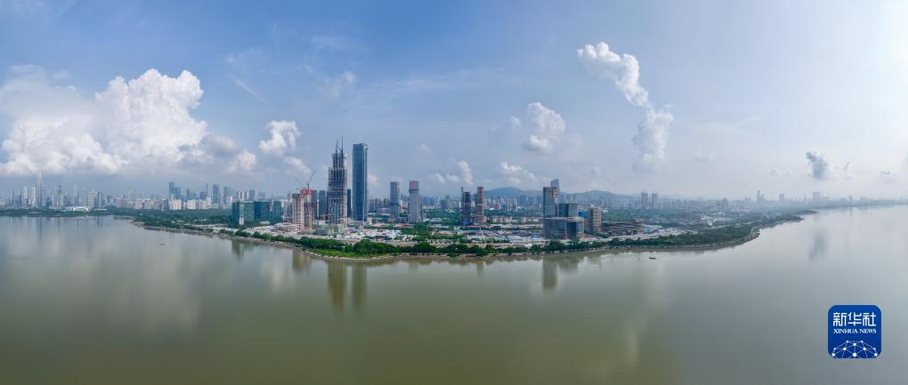 這是建設中的深圳灣超級總部基地(無(wú)人機全景照片,9月22日攝)。