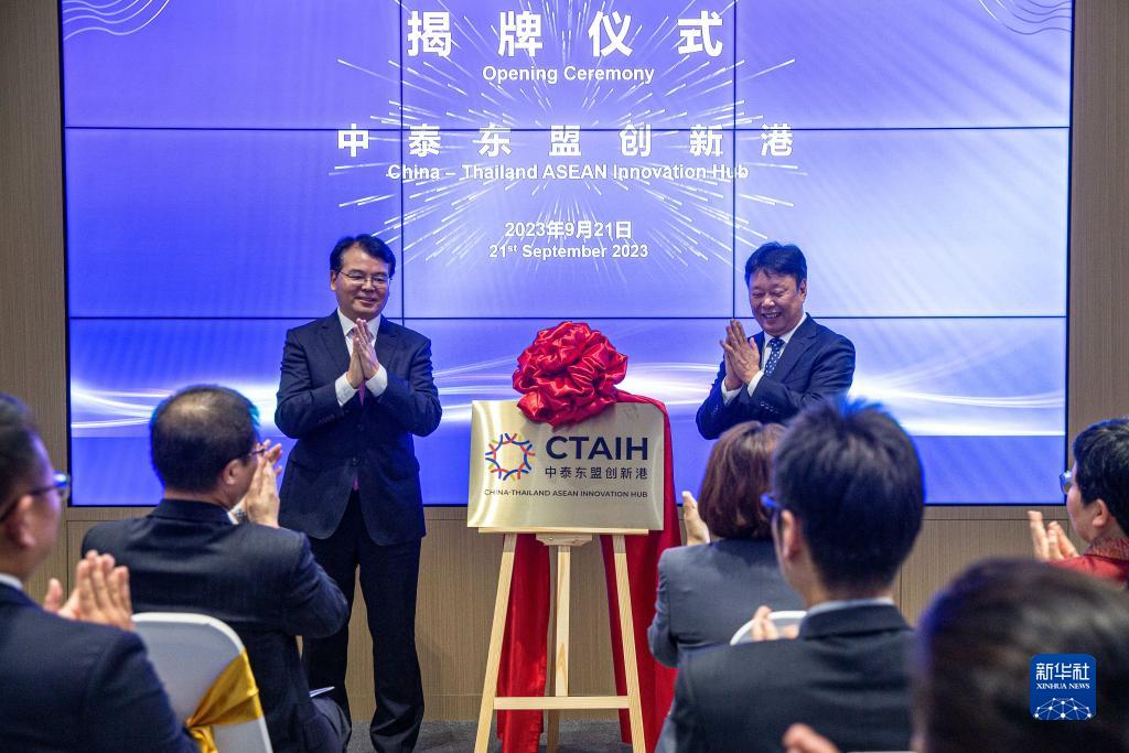 9月21日,在泰國曼谷,與會(huì )嘉賓參加中泰東盟創(chuàng )新港揭牌儀式。