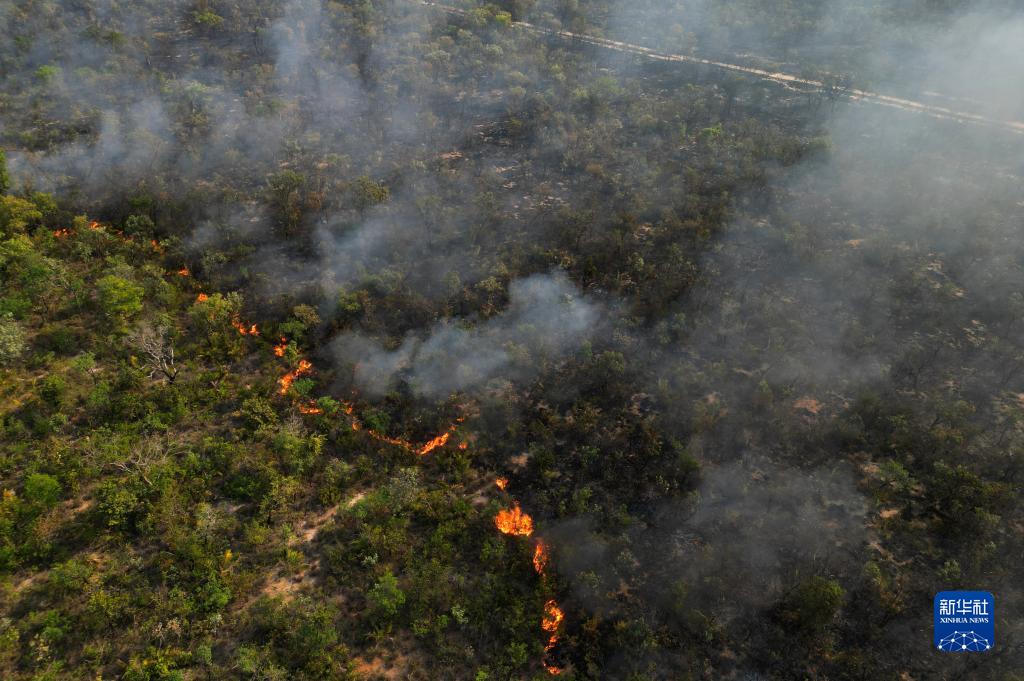 這是9月21日在巴西巴伊亞州巴雷拉斯市附近拍攝的森林火災現場(chǎng)(無(wú)人機照片)。