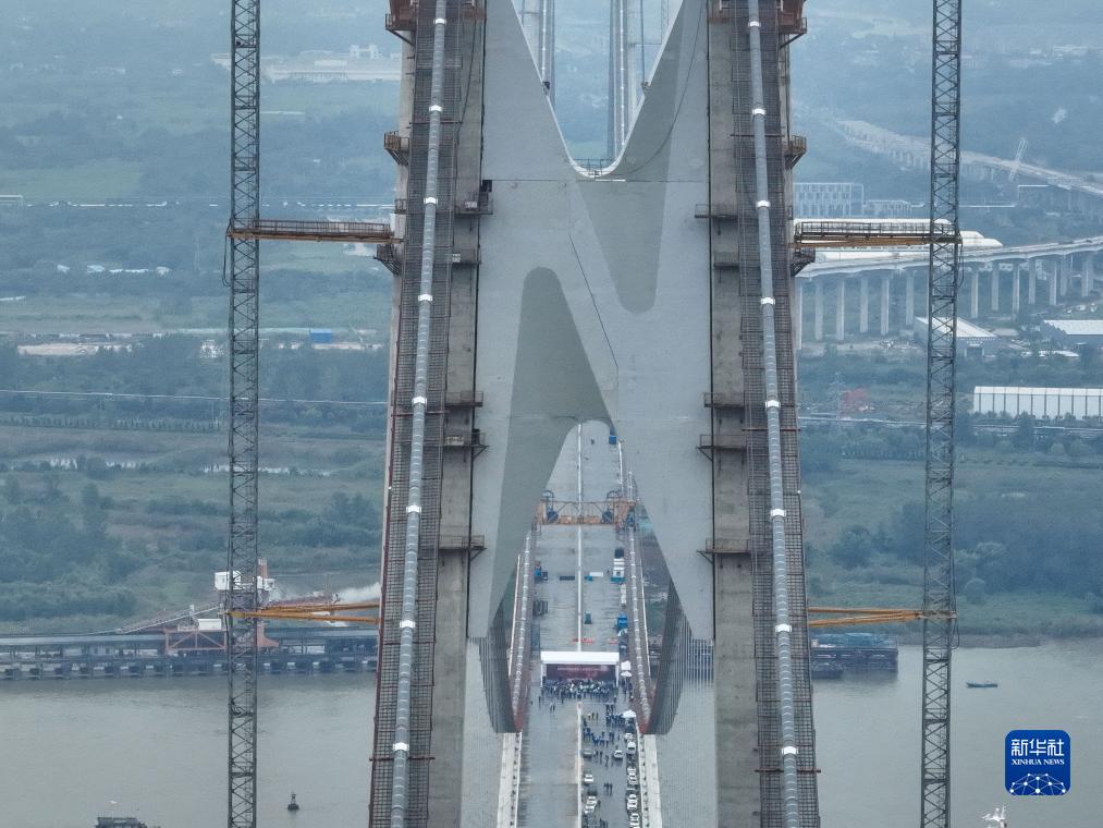 9月23日拍攝的南京仙新路過(guò)江通道跨江大橋(無(wú)人機照片)。