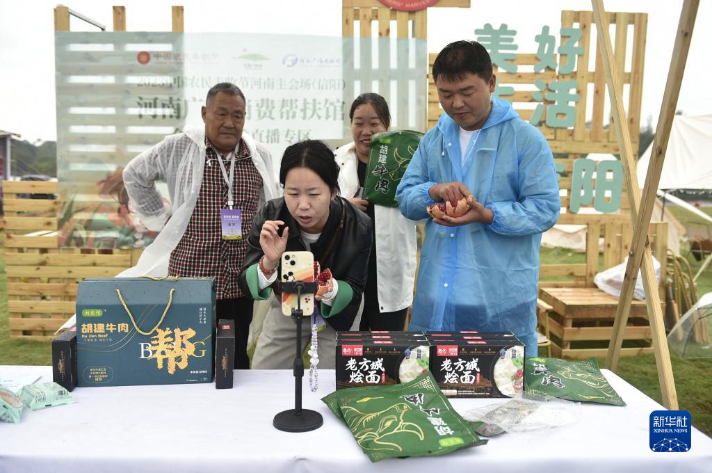 9月23日,工作人員在活動(dòng)現場(chǎng)通過(guò)網(wǎng)絡(luò )直播推介特色農產(chǎn)品。