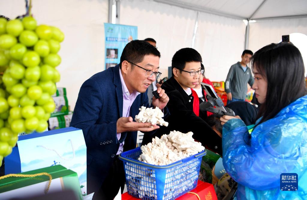 9月23日,工作人員利用直播推銷(xiāo)農產(chǎn)品。