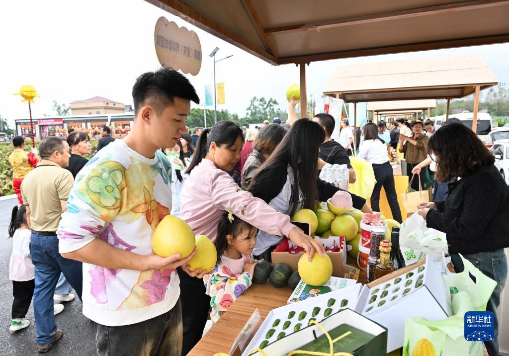 這是9月23日在重慶市璧山區七塘鎮將軍村拍攝的特色農產(chǎn)品展銷(xiāo)活動(dòng)現場(chǎng)。