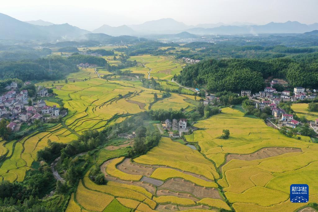 金秋時(shí)節,皖南山區安徽省宣城市旌德縣白地鎮梯田喜獲豐收。金黃的梯田與連綿的群山、錯落的民居相互映襯,勾勒出一幅優(yōu)美的豐收畫(huà)卷。