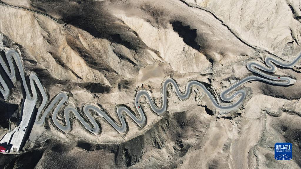 9月5日,游客駕車(chē)穿行在新疆塔什庫爾干塔吉克自治縣“盤(pán)龍古道”景區(無(wú)人機照片)。