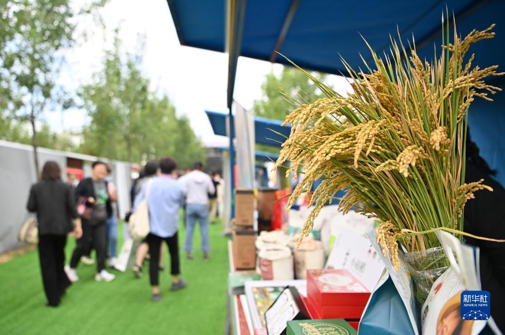 9月23日拍攝的農產(chǎn)品集市上展示的水稻。