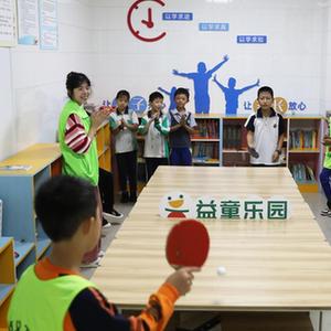 9月23日,在赤水市市中街道濱西社區益童樂(lè )園,孩子們在“童伴媽媽”陪伴下打乒乓球。