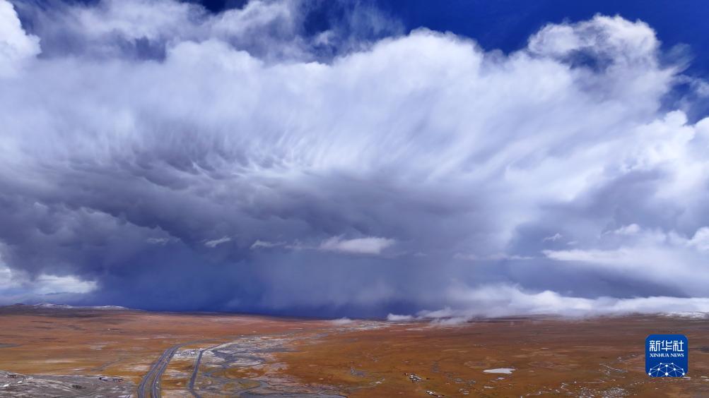 金秋時(shí)節,在位于三江源地區的青海省玉樹(shù)藏族自治州境內,雪山、草原、云海、牛羊組成一幅壯美的秋日畫(huà)卷。