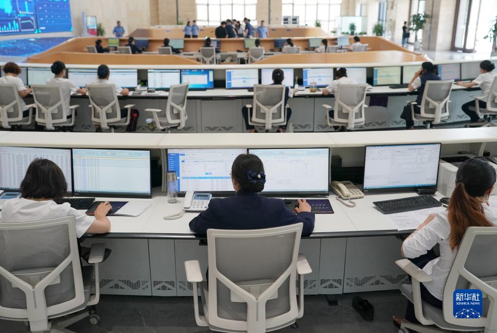 9月7日,工作人員在位于西安國際港站內的貨運服務(wù)中心大廳中處理業(yè)務(wù)。