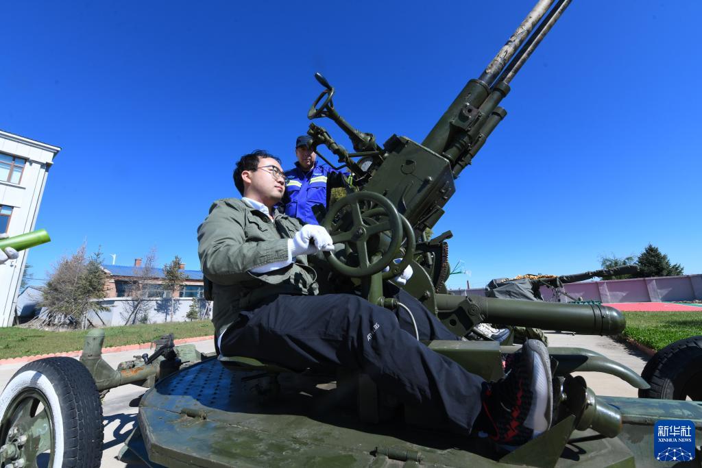 在富錦市氣象局高炮作業(yè)點(diǎn),氣象員李辰暉在學(xué)習人工影響天氣高炮操縱作業(yè)(9月23日攝)。