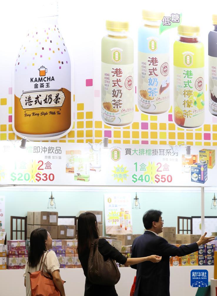 在香港國際茶展上拍攝的港式奶茶展位上的宣傳海報(8月17日攝)。