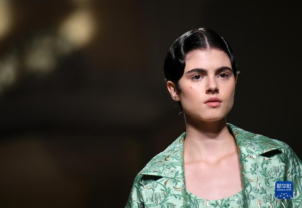 9月24日,模特在意大利米蘭時(shí)裝周上展示含有貴州苗繡元素的設計時(shí)裝。