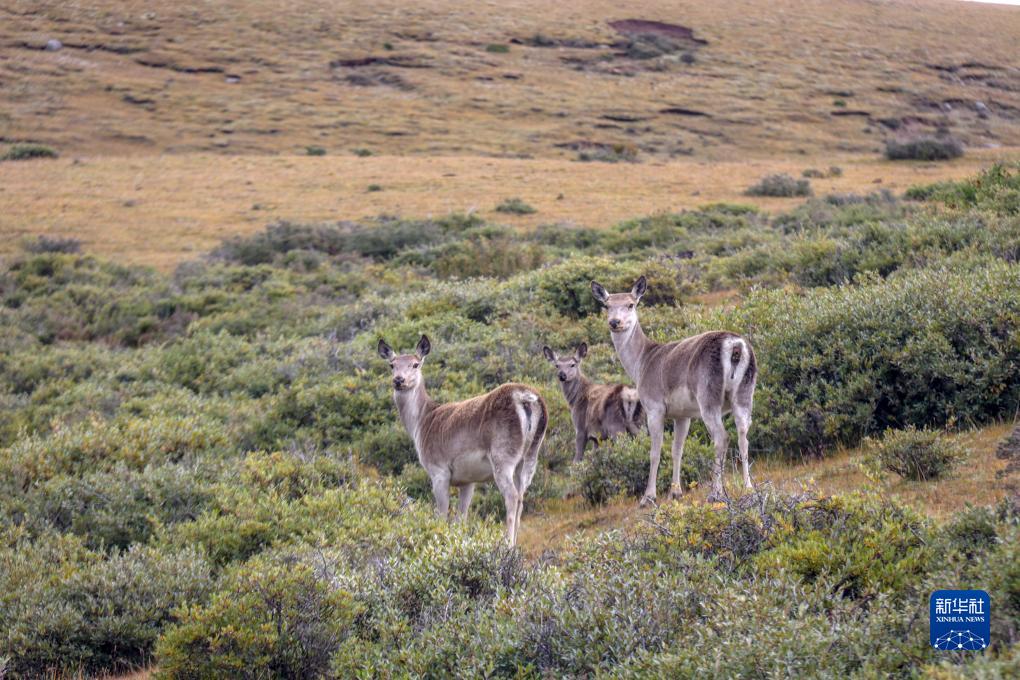 9月24日,幾只西藏馬鹿出現在位于西藏自治區山南市桑日縣的貢德林草原上。