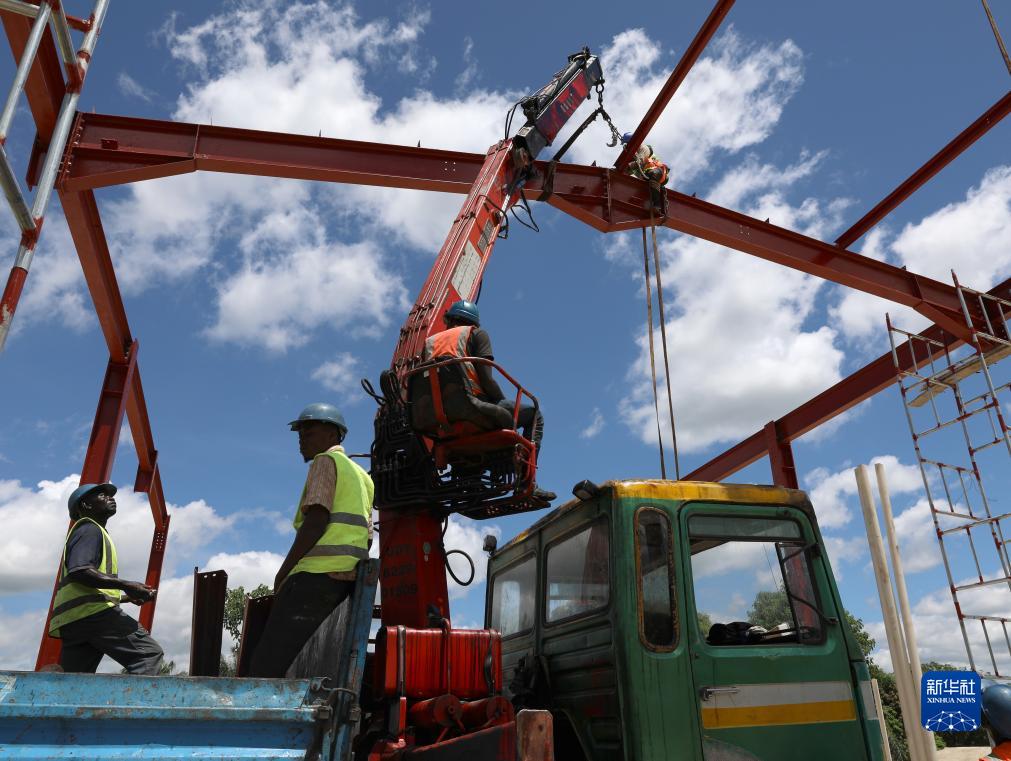 9月20日,工人修建尼日利亞凱菲路一期工程收費站。