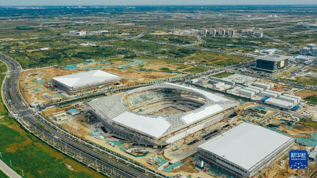 在雄安新區啟動(dòng)區拍攝的雄安體育中心(9月20日攝,無(wú)人機照片)。