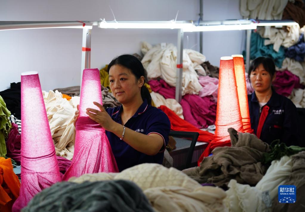 9月25日,河北省清河縣一家羊絨制品生產(chǎn)企業(yè)的工作人員在檢查羊絨衫質(zhì)量。