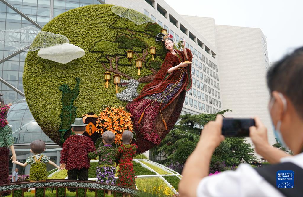 中秋及國慶節假期日益臨近,北京天安門(mén)廣場(chǎng)的“祝福祖國”巨型花籃及長(cháng)安街沿線(xiàn)立體花壇精彩亮相,吸引游人及市民觀(guān)賞留念。