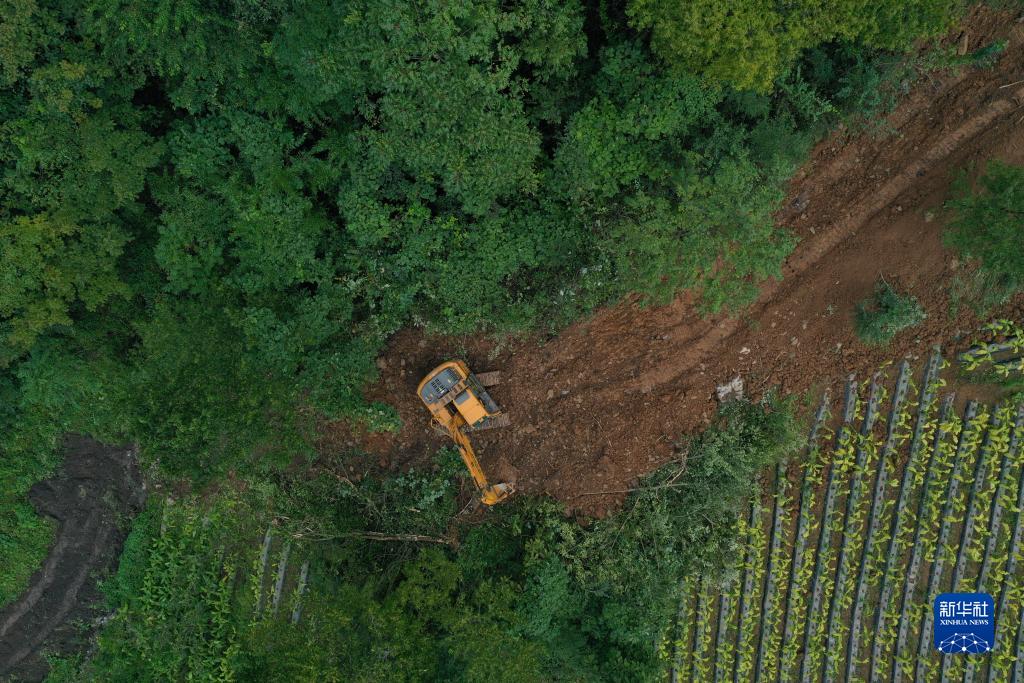 9月25日在重慶市巫山縣篤坪鄉腰棧村拍攝的一滑坡處置現場(chǎng)(無(wú)人機照片)。