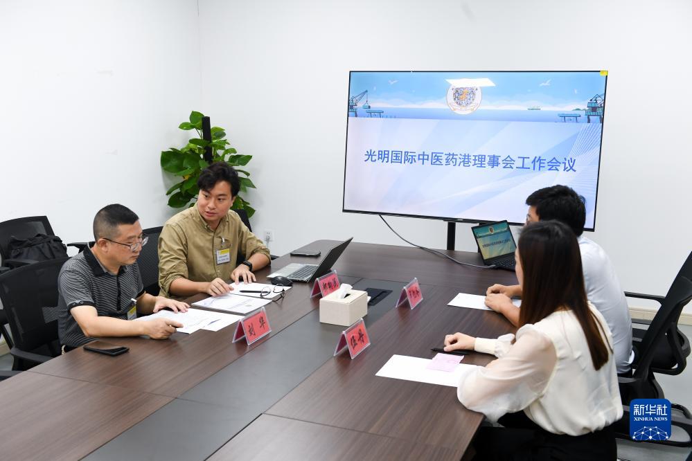 9月4日,在深圳光明國際中醫藥港,郭鈞泯(左二)在參與理事會(huì )工作會(huì )議。