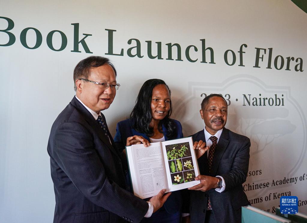 9月25日,在肯尼亞首都內羅畢,中國科學(xué)院中-非聯(lián)合研究中心主任、《肯尼亞植物志》中方主編王青鋒(左),肯尼亞國家博物館館長(cháng)瑪麗·吉昆古(中),肯尼亞國家博物館首席科學(xué)家、《肯尼亞植物志》肯方主編杰弗里·姆瓦查拉出席《肯尼亞植物志》首部分冊發(fā)布會(huì )。