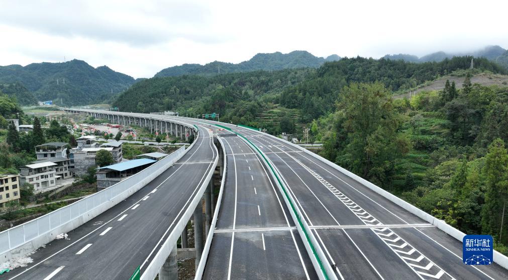 這是9月25日拍攝的湖北省恩施土家族苗族自治州境內的張南高速湖北宣咸段(無(wú)人機照片)。
