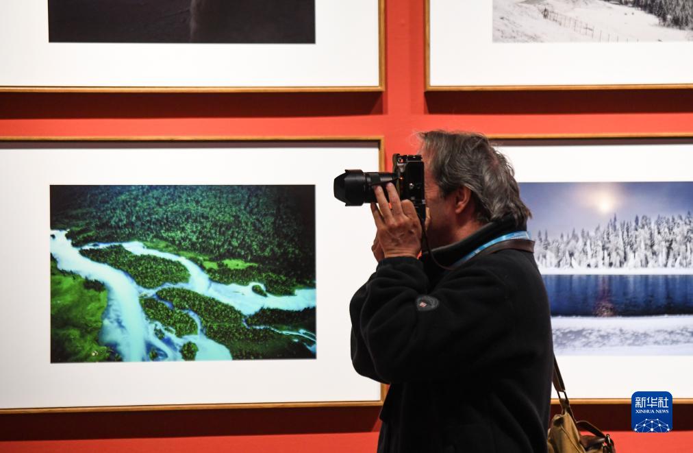 9月26日,在新疆美術(shù)館,參觀(guān)者在拍攝展出的攝影作品。