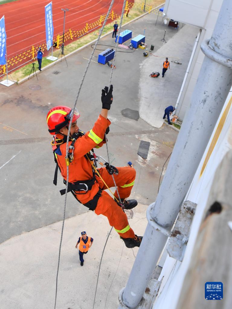 9月26日,參賽選手在進(jìn)行救援技能比賽。