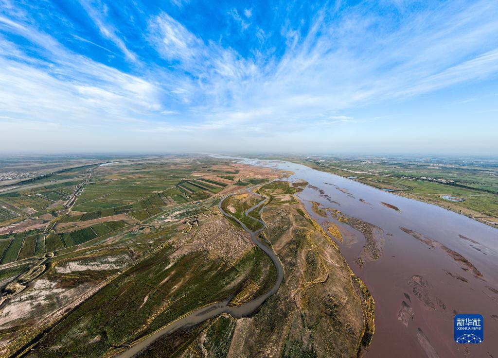 黃河從內蒙古巴彥淖爾市臨河區雙河鎮流過(guò)(無(wú)人機照片,9月15日攝)。
