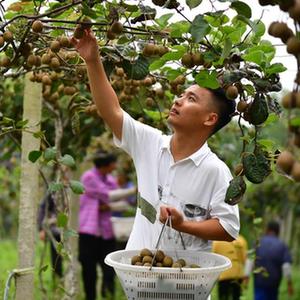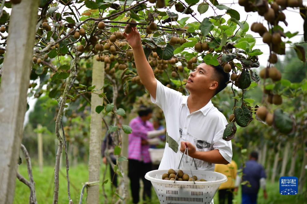 9月26日,段鵬飛在種植園里采摘獼猴桃。