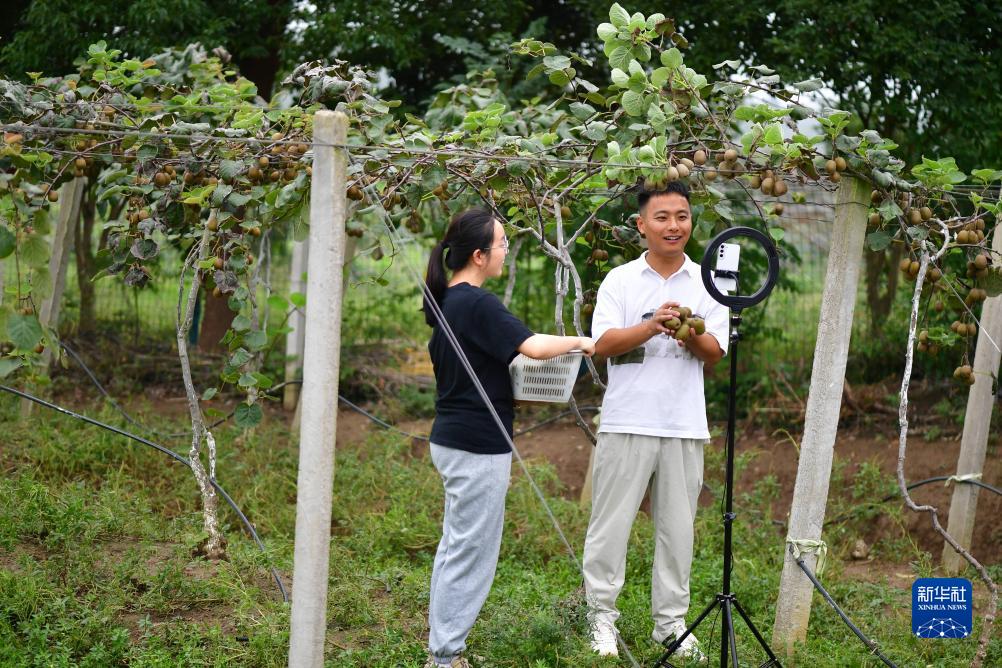 9月26日,段鵬飛在種植園里直播推介獼猴桃。