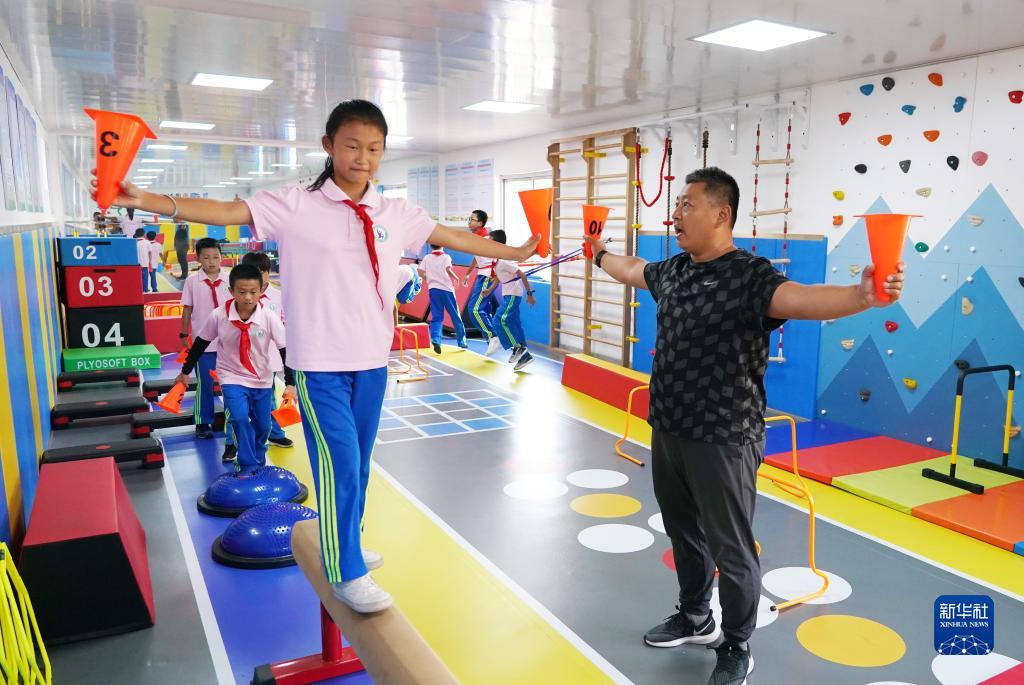 9月26日,河北省秦皇島市海港區耀華小學(xué)的學(xué)生在體適能訓練館進(jìn)行平衡訓練。