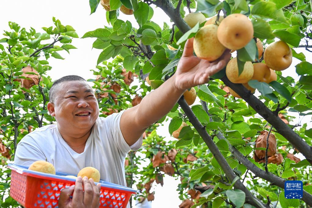 9月26日,村民在貴州省畢節市百里杜鵑管理區穎川村采摘黃梨。
