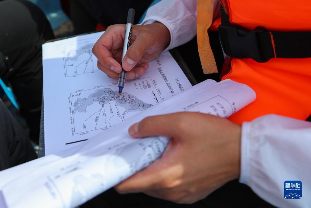 9月15日,團隊成員馮琛在地圖上標注取樣點(diǎn)位。