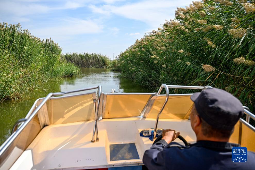 9月15日,快艇行駛在蘆葦叢中。