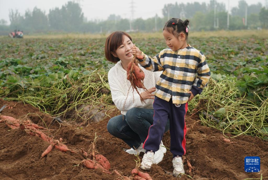 9月27日,游客在北京市平谷區夏各莊鎮賢王莊村的一處紅薯地參觀(guān)。