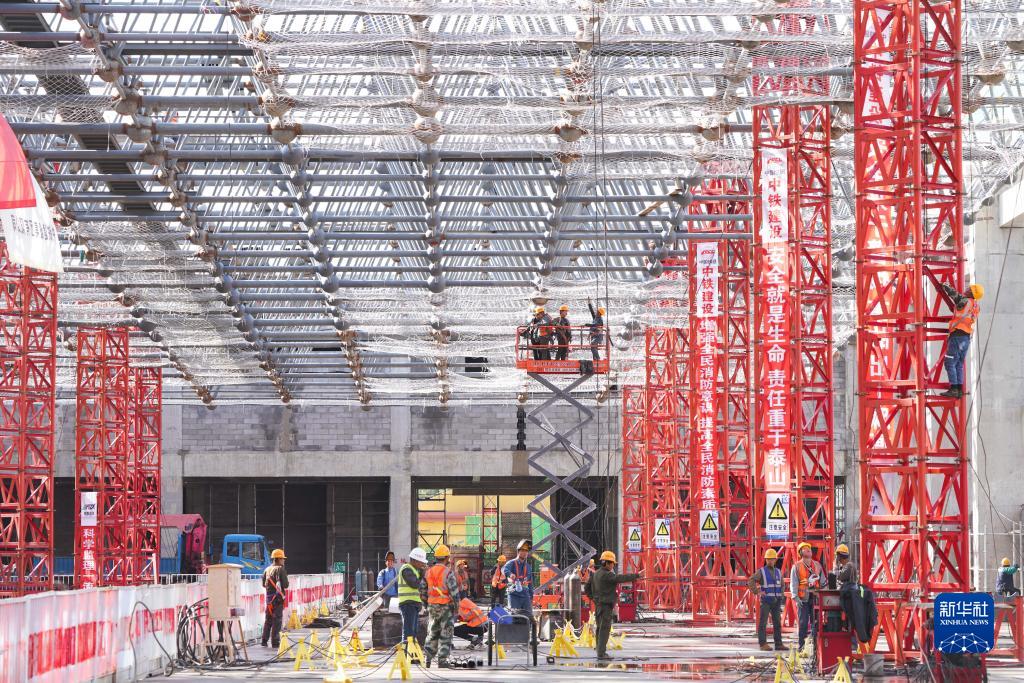 9月27日,工人在伊春西站施工現場(chǎng)作業(yè)。