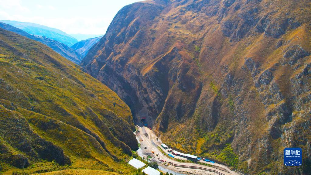 這是9月25日在秘魯拍攝的瓦克塔瓦魯隧道工程施工現場(chǎng)。