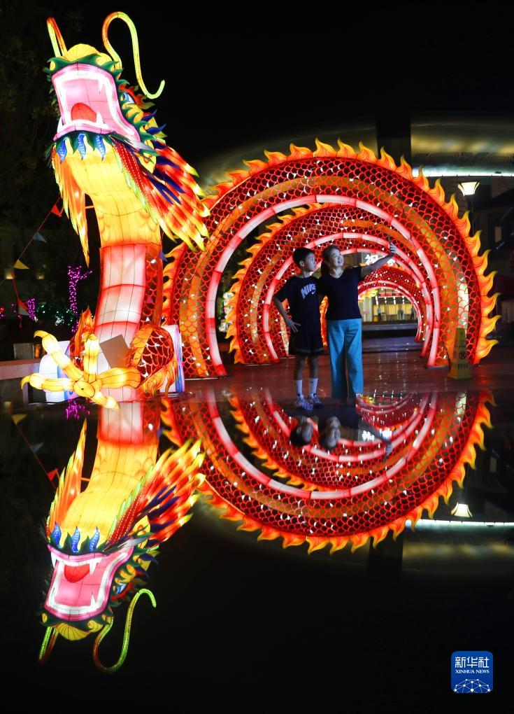 9月27日,游客在南岳祝融彩燈藝術(shù)展上打卡游玩。