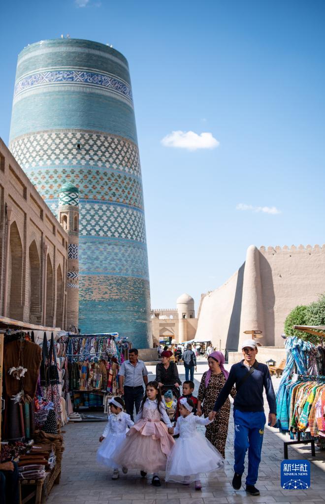 9月21日,人們在烏茲別克斯坦花拉子模州的希瓦古城游覽。