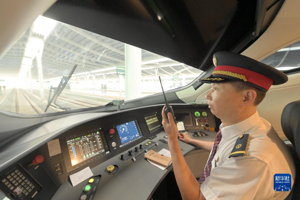 9月28日,G9801次復興號智能動(dòng)車(chē)組司機陳承儀在進(jìn)行開(kāi)車(chē)前的準備工作。