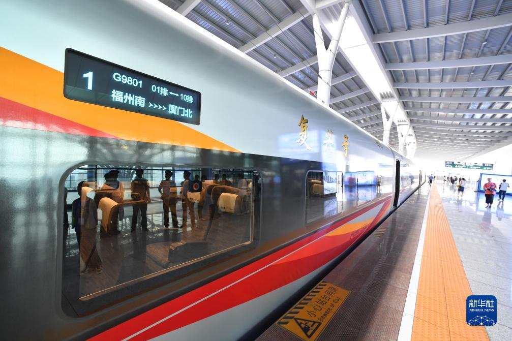 9月28日上午9時(shí)15分,福廈高鐵首趟復興號智能動(dòng)車(chē)組G9801次列車(chē)從福州南站緩緩開(kāi)出,一路南下,奔向廈門(mén)北站。這標志著(zhù)中國首條時(shí)速350公里跨海高鐵——福廈高鐵正式開(kāi)通運營(yíng)。福廈高鐵北起福州,途經(jīng)莆田、泉州,南至廈門(mén)和漳州,全長(cháng)277公里。開(kāi)通后,福州至廈門(mén)的列車(chē)運行時(shí)間將從現在的2小時(shí)左右縮短至1小時(shí)以?xún)?,兩地間形成“一小時(shí)生活圈”。