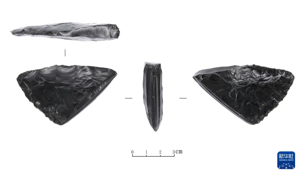 圖為和龍大洞遺址出土的細石葉石核。吉林和龍大洞遺址年代距今5—1.5萬(wàn)年,是中國長(cháng)白山地區年代最早、文化序列最完整的舊石器時(shí)代晚期遺址,也是目前東北亞最早利用黑曜巖制作石器的遺址之一,清晰地展示了該地區石器工業(yè)由石片石器向“石葉—細石葉”技術(shù)轉變的重要過(guò)程,豐富了東北亞現代人演化擴散、文化發(fā)展、生計方式的相關(guān)認識。