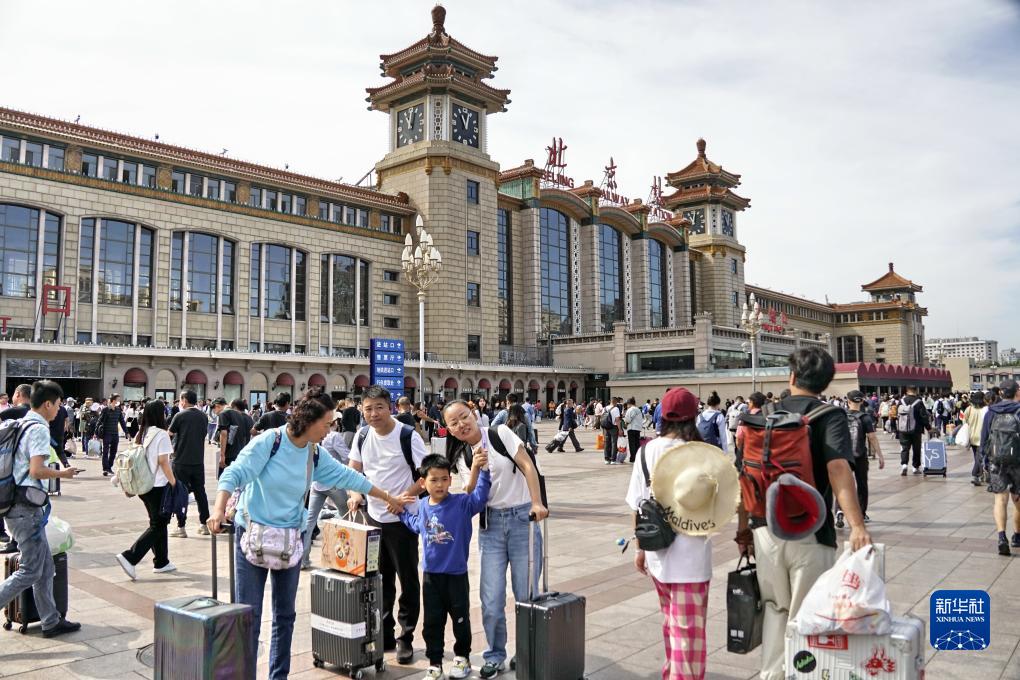 9月28日,北京站站前廣場(chǎng)上旅客眾多。