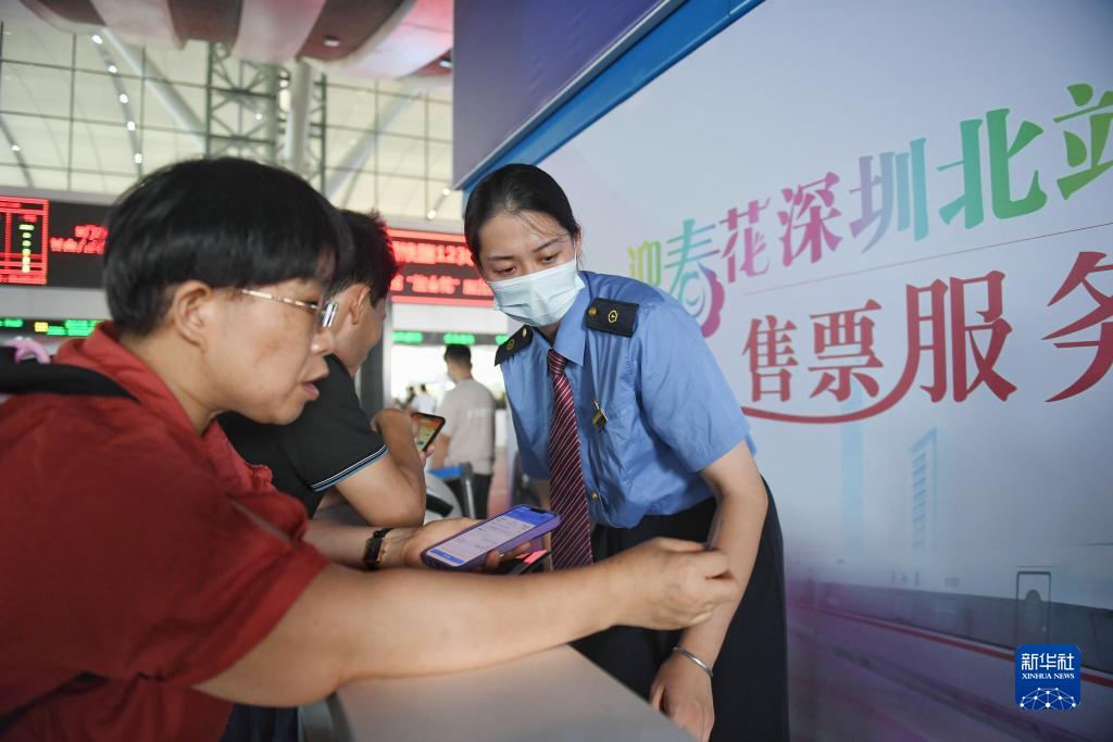 9月28日,工作人員在深圳北站為旅客服務(wù)。